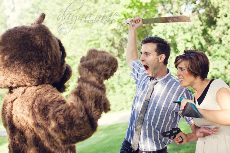 Fast forward 16 years, to when Josh comes into the picture… Ashley was the maid of honor at my wedding almost 2 years ago! We’ve seen each-other at our worst, and our best. Years ago, I remember praying with her for her future Husband, and the Lord is not slow in keeping His promise. Josh is, well, goofy- and wonderful all at the same time. Which, if you know Ashley, is absolutely perfect. Josh and I had so much fun planning this engagement session… well… you will see why in a few frames. Special thanks to my hubby MATTHEW for being a super trooper and dressing up in a old musty sweaty costume.. I mean, that’s a real bear… Enjoy and if you like this engagement session, please share it!