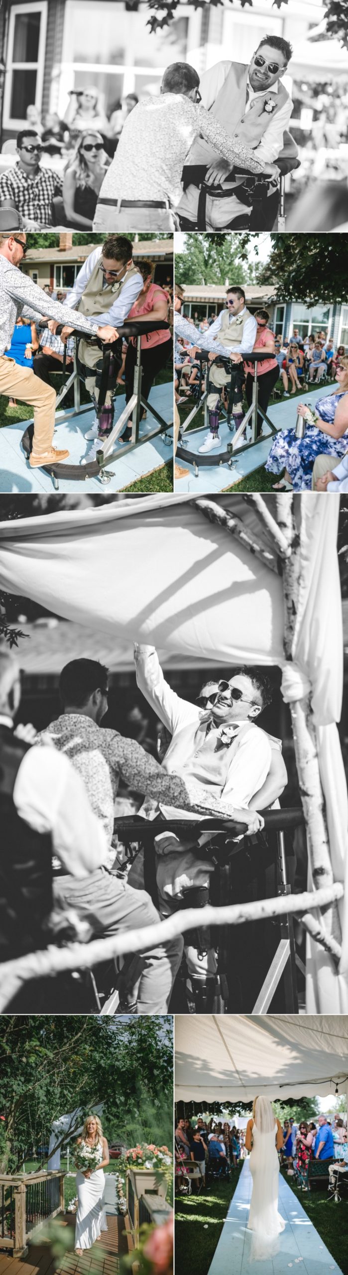 After a boating accident 4 years ago, Josh encountered extensive spinal cord injuries, and became quadriplegic. Through years of extensive therapy, and still on his journey, his wedding day he was able to walk for the FIRST TIME with assistance down the aisle as family and friends had not seen him walk for nearly 4 years. He took step by step giving his hardship to The Lord, and walked down to the place he would say his I-Do’s to Anita, the angel by his side.